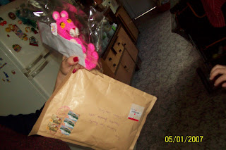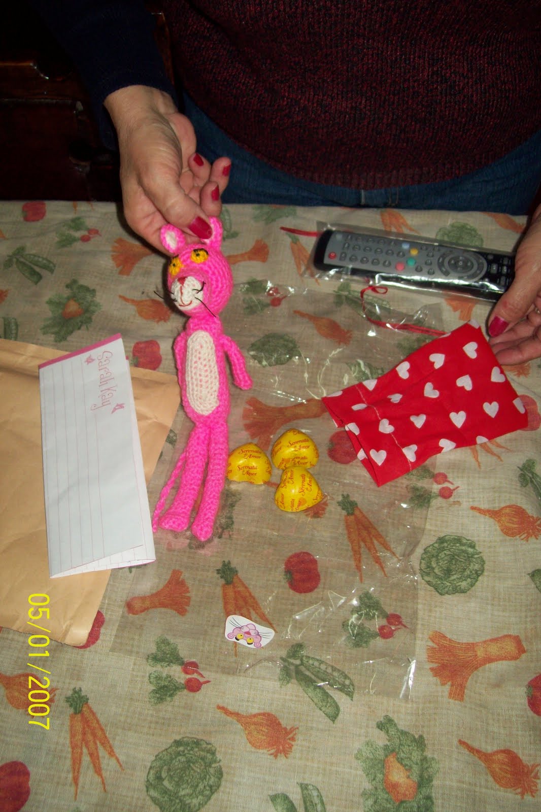Karina de "Rincón de Artesanías" a mi mami... también para el Inter de Mundo Ami.... mi mami realmente no tenía idea de Amigurumis, y la Rienita de casa es fanática de la pantera rosa... fue entonces que a pedido de ella Kari envió esta simpática y hermosa Pantera.... mi mami y mi Reinita FELICES....!!!!